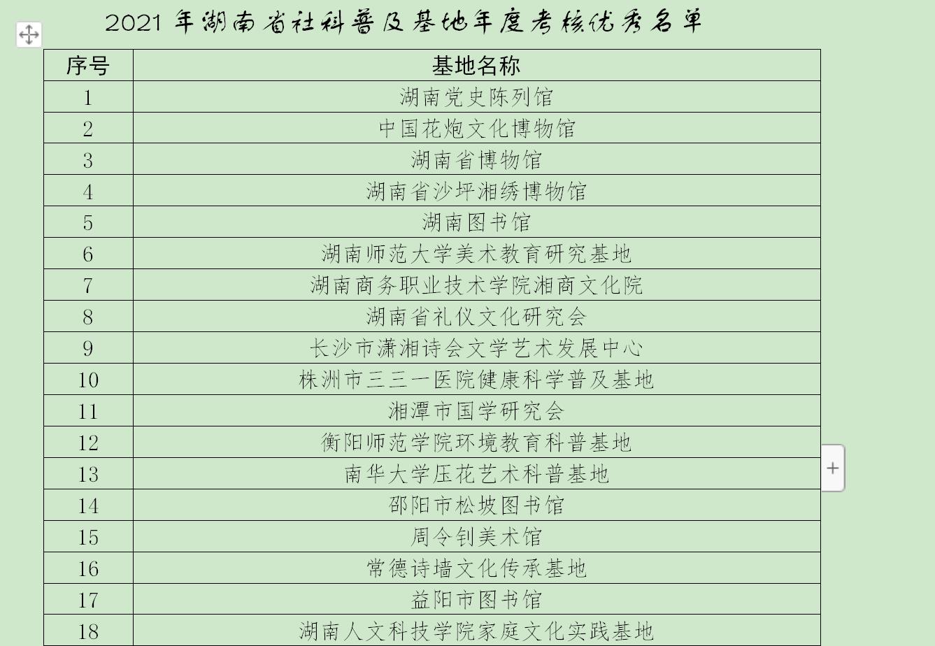 2022年1月13日,根据湖南省社科普及基地年度考核结果公示,beat365中文官方网站家庭文化实践基地于全省166家科普基地中脱颖而出,荣获省社科普及基地优秀奖。