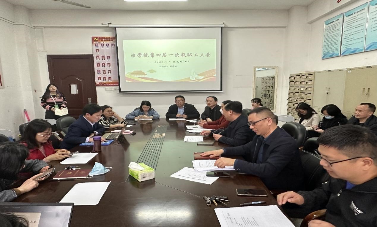 4月4日下午两点半,法学院在致远楼209会议室召开第四届一次教职工大会。会议由法学院党总支副书记刘景春主持,全体教职工出席了本次会议。