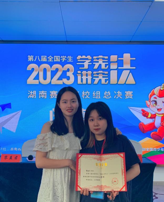 2023年9月24日,第八届全国学生“学宪法 讲宪法”活动(湖南赛区)在湘潭大学完美落下帷幕。beat365法学院大二学生贺彬兰历经重重挑战,在激烈的初赛中崭露头角,成功跻身湖南赛区高校组素养竞赛的总决赛。