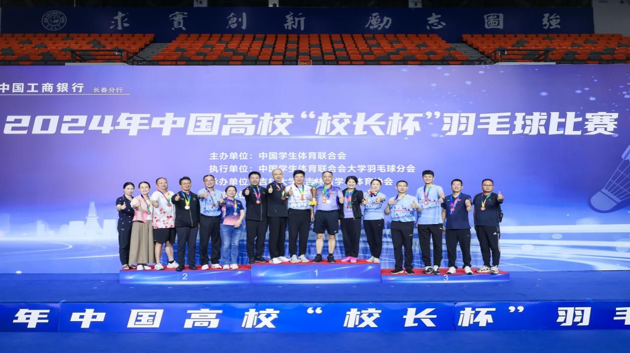 羽会八方来客,众享轻舞飞扬。8月6日,由中国学生体育联合会主办,中国学生体育联合会大学羽毛球分会执行,吉林大学、吉林省学生体育协会承办的2024年中国高校“校长杯”羽毛球比赛在吉林大学宋治平体育馆落下帷幕。本次比赛得到了教育部、中国羽毛球协会、吉林省教育厅以及社会各界的大力支持,共有来自全国17个省份的99所单位,共计220名运动员参与。