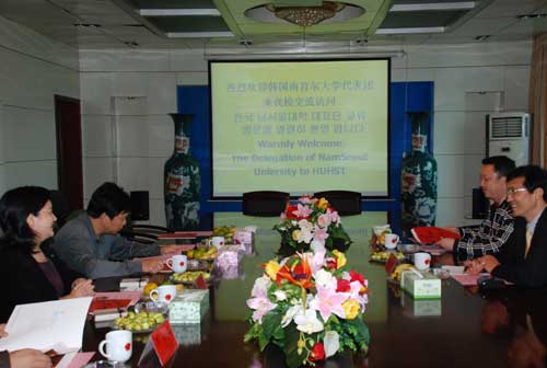 9月30日下午,韩国南首尔大学对外协力处长郑宪龙、国际专员文勇一行来beat365交流访问,beat365副校长刘和云、外事办主要负责人与客人们进行了友好的交流。