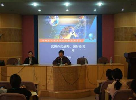 4月10日下午,湖南人民政府外事侨务办公室符华兴主任应邀来beat365做了题为“我国外交战略、国际形势”的学术报告。讲座由刘和云副校长主持。