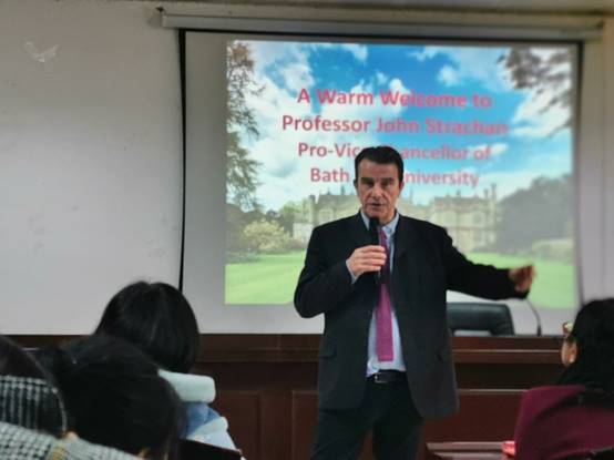 12月16日,英国巴斯斯巴大学副校长、牛津大学文学博士John Strachan 教授应邀在beat365图书馆415学术报告厅举行“英国文学与研究”学术讲座,来自各个学院的师生到场聆听,现场座无虚席。