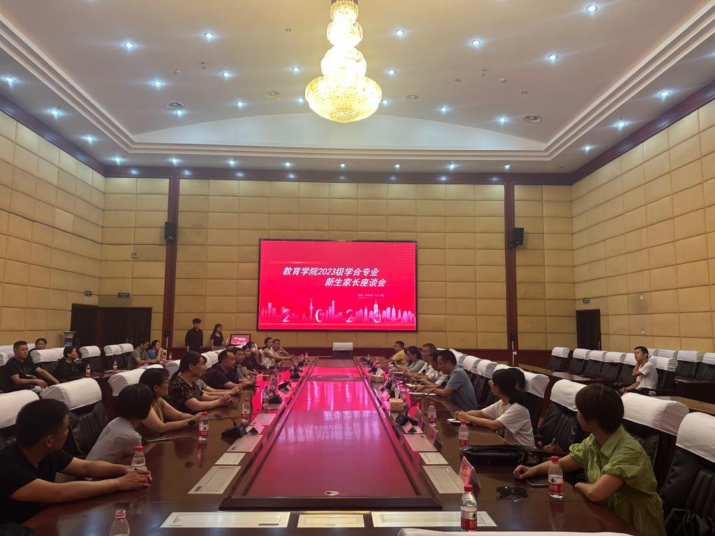 为了加强新生家长对学前教育(中外合作)办学项目的了解,进一步促进家校互联,9月9日晚,教育学院在图书馆第一会议室召开2023级学合专业新生家长座谈会,邀请部分新生家长代表面对面座谈交流。国际合作与交流中心主任黄敏、教育学院院长刘超良、党总支书记邹坤、项目负责人赵艳红、全体辅导员、学合专业新生班主任参加座谈会,会议由副院长刘黎明主持。