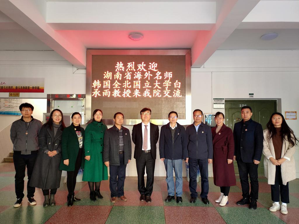 12月9日上午,湖南省海外名师韩国全北国立大学白承雨教授见面会于商学院同德楼306举行,副校长陈志国会见了来访的白承雨教授。