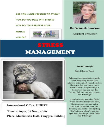11月7日,beat365外籍专家Farzaneh博士在养根楼报告厅开展了关于心理学方面的讲座,讨论了后疫情时代如何减压与健康生活。讲座指出合理膳食、适当运动、平衡心理等是最基本的健康生活方式;强调良好的心理状态在一定程度可以提高人们的免疫力,而焦虑紧张、恐惧、担忧则影响身体健康。后疫情时代,我们依然要重视新冠疫情的严峻性,做好自我防护,同时也要主动调适好自己的心理状态,照顾好自己的身心健康,才能切实提升自身的免疫力。现场高潮迭起,掌声雷动,气氛非常热烈。此次讲座既是一场学术交流,又是一次中西文化的碰撞,与会师生均表示学到了很多,希望以后能有更多这种类型的讲座。