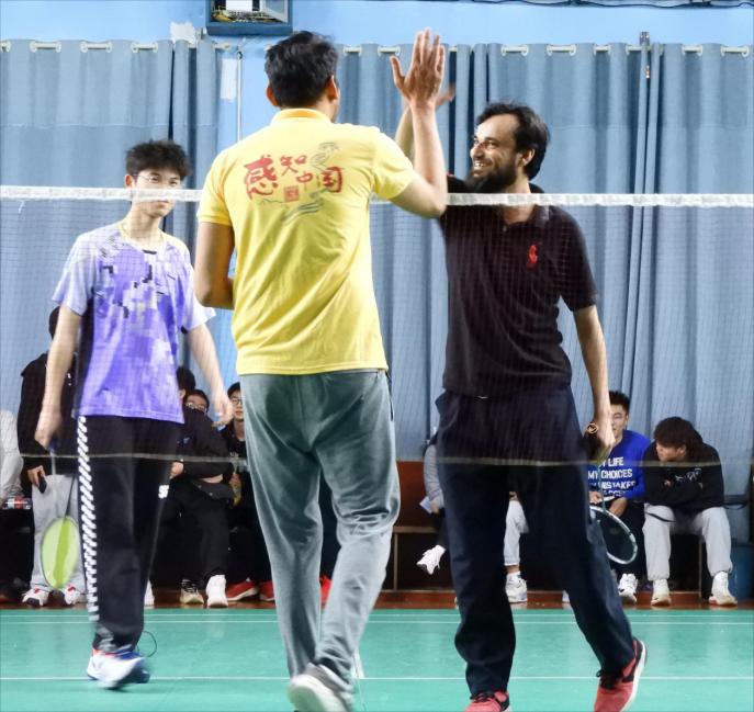 本次比赛分为教师组与学生组,采取11分制赛制,三局两胜。比赛紧张激烈、扣人心弦,参赛选手展现出了饱满的热情和积极的状态,劈吊、杀球等精彩场面层出不穷,现场气氛热烈,欢呼声、欢笑声不绝于耳。经过两个小时的友好切磋,比赛落下帷幕。师生赛后一同交流比赛经验,参赛选手中有来自乌克兰、韩国、巴基斯坦、尼日利亚等国家的师生,大家互赠礼物、合影留念,在轻松愉快的氛围中增进了中外文化理解,增强了队伍的凝聚力。