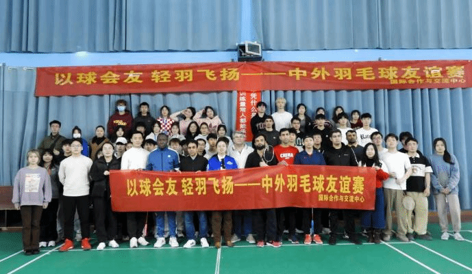 3月28日,由国际合作与交流中心组织开展的“以球会友,轻羽飞扬”中外羽毛球友谊赛在体育馆成功举办。本次赛事由中外文化交流协会及星星羽毛球协会承办,国际合作与交流中心全体成员、在校外教、留学生、及部分学院师生代表参加了比赛。