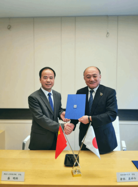 (盛明科和仓林真砂斗校长正式签署两校人才培养合作协议)