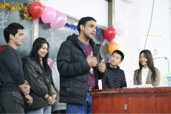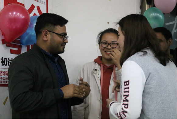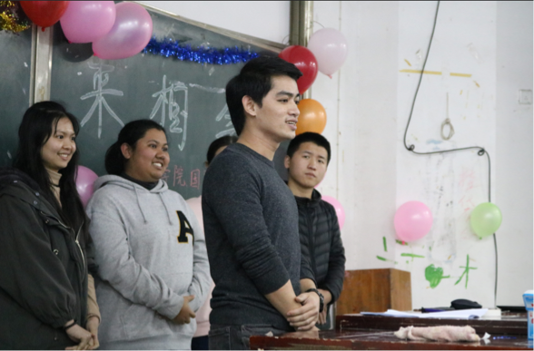 发言结束后,联谊活动正式开始。首先由文学院18级汉文二班的王婧文带来舞蹈《极乐净土》,17级汉文三班的盛占友带来歌曲《鸳鸯蝴蝶梦》。这两个节目激起了外国友人的表演欲,来自孟加拉国的留学生王天成主动提出上台做演讲,给我们演示了孟加拉国的风土人情。