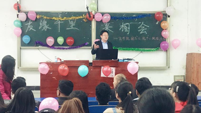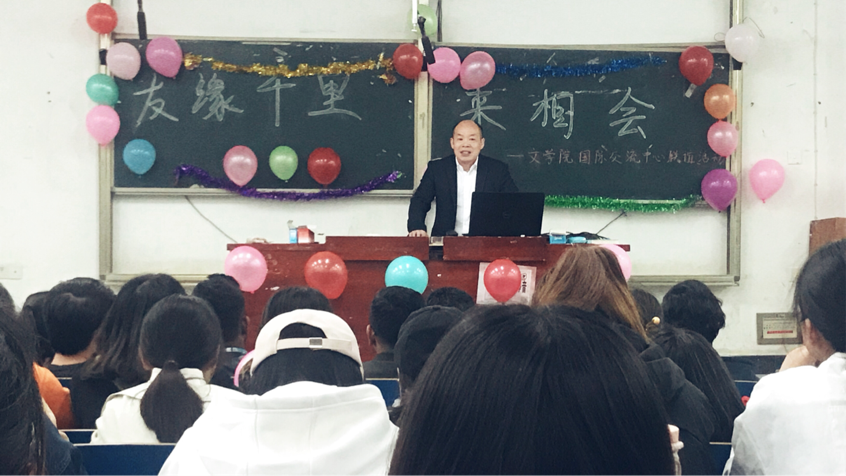 4月11日晚7:30,文学院和beat365留学生联谊活动在致远楼119举行。出席此次活动的有文学院、留学生主管部门的领导、教师和文学院17、18级三个班的同学。