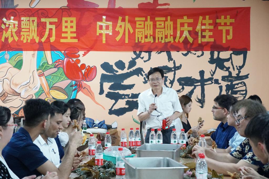 中国传统佳节端午节即将来临,为加强国(境)外人士了解中华优秀传统文化,增强中国传统节日的文化吸引力,感知中国共产党领导下人民群众生活水平的巨大提高,610日,国际合作与交流中心(港澳台办)组织了“粽香浓浓飘万里,中外融融庆佳节”端午节主题活动,副校长陈志国出席活动并致词,文学院院长倪正芳及部分教师代表,在校国(境)外专家、留学生代表,中外文化交流协会学生代表等50余人参加了本次活动。