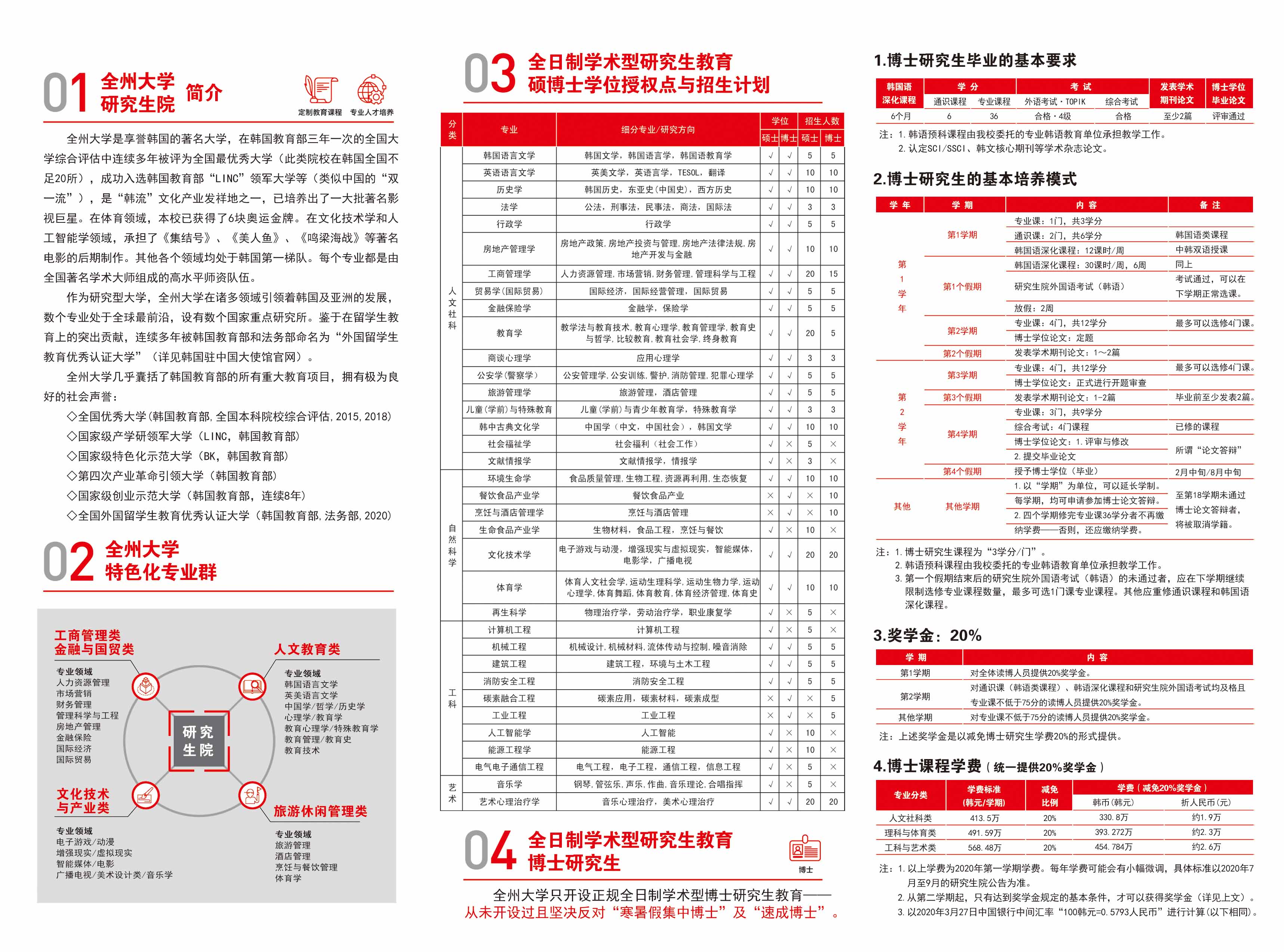 韩国全州大学2020年秋季硕士博士招生简章