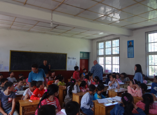7日下午,国际合作与交流处处长蒋冰清教授对学校的孩子们捐赠了练习本和笔等学习用品,其次Paul Doherty教授在长石村的直乐小学对该学校的5和6年级的学生进行了通俗易懂的英语教学,并与学生进行了互动,让学生找到了学习的快乐; 3位泰国交流生在直乐小学对学校的师生进行了泰拳和泰舞的交流和表演,让师生了解了泰国文化。国际友人的到访,有利于激励孩子们从小树立全球意识,好好学习,走出大山,成为国家的栋梁之才。