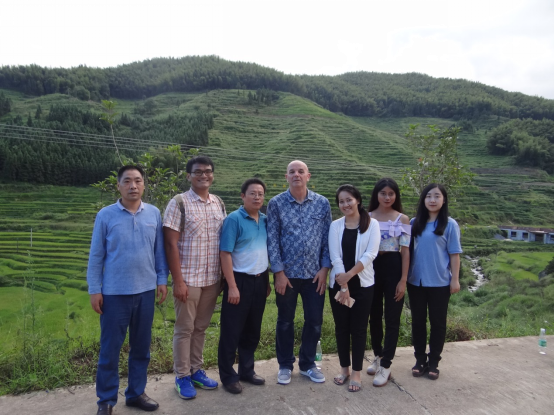 次日上午,在国际合作与交流处处长蒋冰清教授、农生院高级农艺师罗育才的陪同下,英国教授、博士Paul及泰国的3位交流生考察了精准扶贫的产业项目,对稻田养鱼、林下经济和油茶林的栽培技术进行了深入的了解,并提出了宝贵的建议,让村民早日脱贫致富。