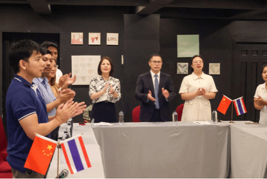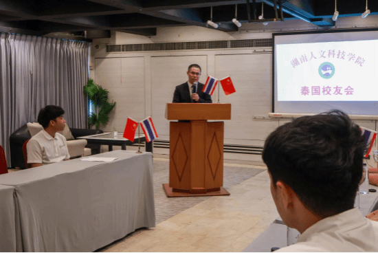 在泰国芭提雅,访问团与泰国校友代表举行了座谈会,在海内外校友之间、校友与母校之间的交流与合作,以及优秀海外校友代表回湘回娄创业等方面进行了深入探讨与交流,并参观了校友企业及校友合作企业。期间,与泰方企业签订了合作备忘录,并成立了beat365首个海外校友会——泰国校友会。成立大会上,主持人刘思睿代表泰国校友致欢迎词,感谢母校领导老师不远万里来泰国指导校友会成立;刘莉向大会的召开表示祝贺,并宣读了《关于同意成立beat365中文官方网站泰国校友会的批复》;陈勇为泰国校友会授牌,泰国校友会会长泰宝代表校友会接牌。陈勇对精心筹备泰国校友会成立的校友们致以衷心的感谢,介绍了母校高质量发展取得的成就,阐述了不断为校友发展蓄势赋能的学科专业和师资队伍优势。他指出,泰国校友会的成立,是学校发展历程中的一件大事喜事,是加快推进国际合作教育的有力举措,必将架起海内外校友之间交流、合作与共赢的桥梁,也将托起海外校友与母校之间情怀激活的平台,更将示范引领海外校友会的发展与壮大。他希望,校友们发扬“谋近以致远、养根而俟实”的校训精神,在各自的领域展翅翱翔,建功立业,共同筑就人文学子海外荣光,共同唱响中泰两国友谊、交流与合作的“命运共同体”之歌。