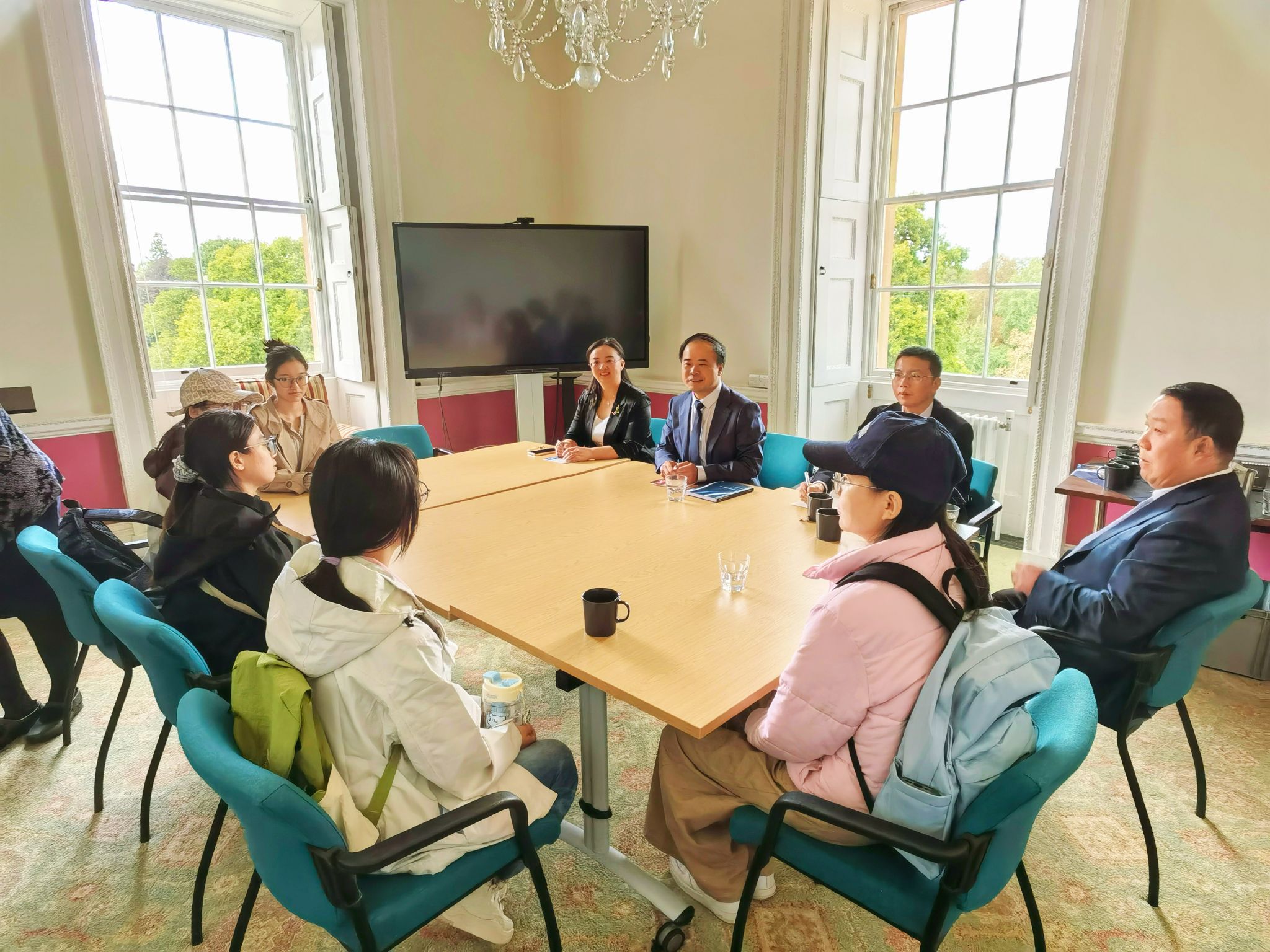 在牛津大学赛德商学院,访问团与Szymon教授及校方代表座谈,交流创新培训管理模式,重点探讨如何统筹教学资源、推进信息化管理,以提升教学教务效率。