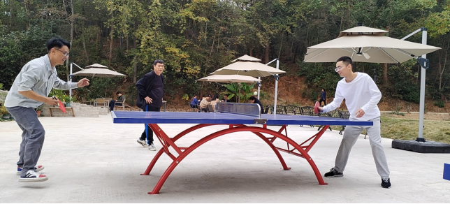 走出陈列馆,在广阔的运动场地,大家开展了乒乓球等丰富多彩体育运动,在运动中互相分享交流中国冬奥、女排等体育精神,学习中华传统运动文化。