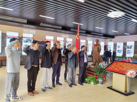 全体同志首先参观了“青年毛泽东游学第一站”展厅陈列馆,在展厅,在党支部书记陈功平同志带领下,大家重温了入党誓词,随后全体同志细心地浏览陈列馆展品,通过追寻伟人足迹,重温了1916年毛泽东同志从长沙游学到娄底茶园的这一段本土历史。