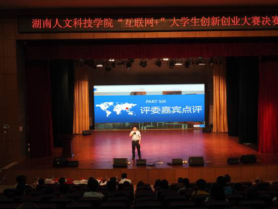 On the afternoon of June 19, the finals of the Third “Internet Plus” university Students Innovation and Entrepreneurship Competition which was jointly sponsored by School of Innovation and Entrepreneurship and Office of Teaching Affairs of HUHST came to a close in the concert hall of Yifu Building. The panel of judges include: Zhou Faming, Vice President , Yao Yue , one of the partners and general manager of Hunan district of Seentao Technology Ltd. Xiao Changcheng, chairman of Hunan Ruiqi Electric Appliance Co., Ltd. Hu Peng, CEO of Shanghai Heyi Network Technology Co., Ltd. The expert from Innovation and Entrepreneurship Education Alliance, Dr. Wei Ke, judge of national “Internet Plus” College Students Innovation and Entrepreneurship Competition, Yang Siqing, Director of Office of Teaching Affairs, Gao Yuquane, CPC Party branch secretary of School of Innovation and Entrepreneurship.