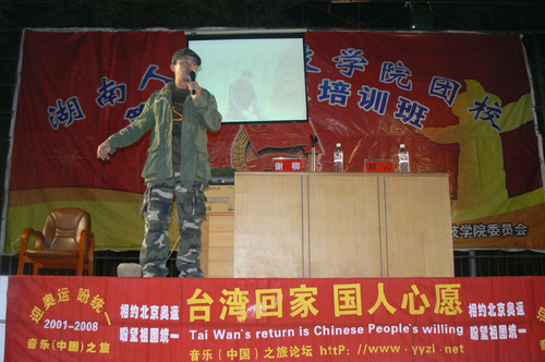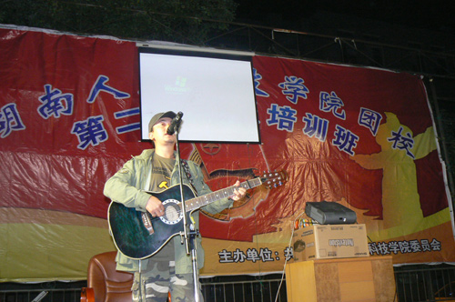 10月17日晚7:00,我院团校第二期学员培训班别具一格的第三堂课在理科楼前坪准时进行。首先,院团委谢柳副书记介绍了今晚的特邀嘉宾刘云——全国优秀青年志愿者。自2001年我国申奥成功的第二天,刘云便带着他“用歌声盼祖国统一,用真诚温暖人间”的梦想义无返顾地踏上了他的音乐中国之旅。六年来,他的足迹已踏过新疆、西藏、云南等25个省市自治区,到过了30多所贫困中学义务支教,资助过25个全国各地的贫困学生。