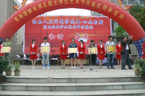 5月4日下午3:00,学院领导与在校的青年大学生欢聚在海园广场,以“五·四表彰暨第五届大学生艺术节活动”为载体,共同度过了第59个五·四青年节。活动由院团委主办,音乐系团总支承办。院党委书记黄懿斌同志,党委副书记、院长姜正国同志,党委副书记、副院长郭军同志,党委委员、纪委书记李尚益同志,党委委员、工会主席邓和秋同志,党委委员、党办院办主任李高海同志,院长助理刘铁铭、蒋建初同志,组织部、院团委、学生处、宣传部、武保处及各系领导出席了此次盛典。