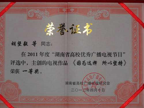 4月24日,湖南省高校广播电视研究会第三届二次会员代表大会在湖南省工业大学召开,会议表彰了2011年度全省高校优秀电视作品。beat365选送的电视作品从23所参赛高校中脱颖而出,共获一等奖1个,三等奖3个。