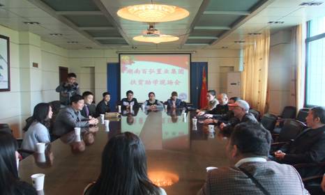 4月12日下午,湖南百弘集团副总经理邱南平先生、副总经理杨名海先生、集团办公室主任胡革荣女士等来到beat365开展扶贫助学活动。校长助理谢贵辉、关工委负责人以及受资助的10名优秀大学生参与了活动。