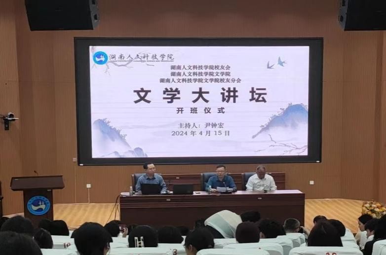 在开班仪式上,文学院尹钟宏书记介绍了文学大讲坛的来由,它是2023年11月文学院校友分会成立以后,经文学院校友捐赠,文学院和文学院校友分会筹办的一个与文学院学科专业相适应的专业化文学讲坛,旨在强化文学院专业特色,加强人才培养,推进文学院发展的重要活动。尹钟宏书记提到,“文学大讲坛”的策划与筹办彰显了学院建设过程中深厚的人文底蕴,未来将成为文学院及校友分会的重要品牌活动。