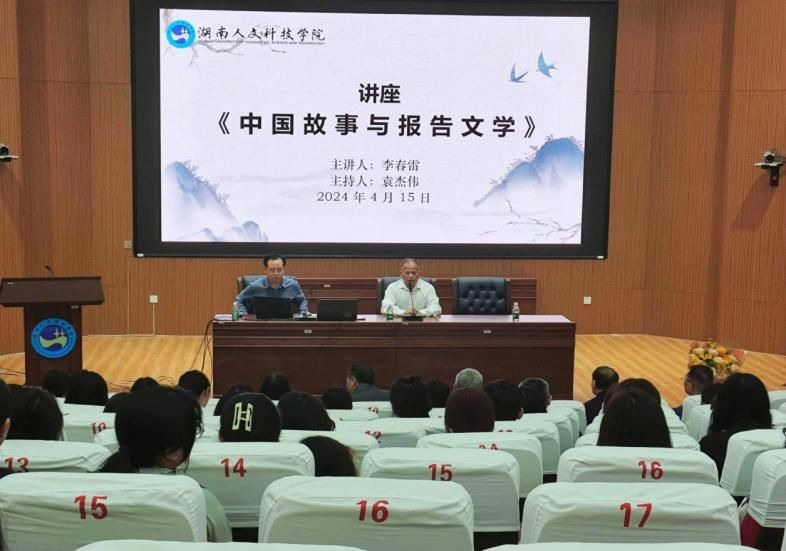 文学院校友分会会长袁杰伟主持讲座。他详细介绍了李春雷老师在文学创作上取得的各项成就。他指出,李春雷老师是中国短篇报告文学之王,是当之无愧的报告文学大家,希望同学们要珍惜机会,认真听讲,积极互动。