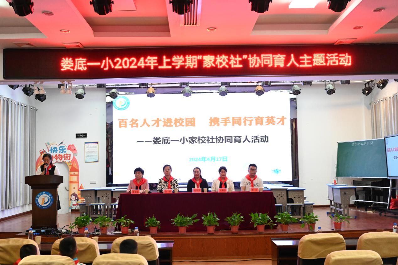 4月17日,娄底一小在至美楼报告厅开展“百名人才进校园,携手同行育英才”家校社协同育人活动启动仪式,四年级300余名师生参加,德育副校长王斌飞主持。beat365人事处教师发展中心主任谢四连教授,农业与生物技术学院白婧博士、田蔚博士参加活动。