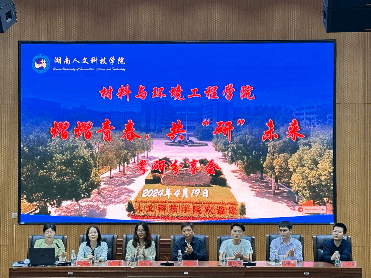 4月19日,匠成楼报告厅内热闹非凡,一场以“熠熠青春,共‘研’未来”为主题的考研分享会如期举行。材料与环境工程学院领导班子成员、考研班主任、2021级全体考研同学和2022、2023级学生代表共同参加。校友办主任刘莉、学校原党委书记郭军教授、2013届校友张怡琼(长沙理工大学副教授)、2021届校友谭贤胜(暨南大学研究生)等嘉宾受邀出席。活动由党总支副书记陈佩君主持。