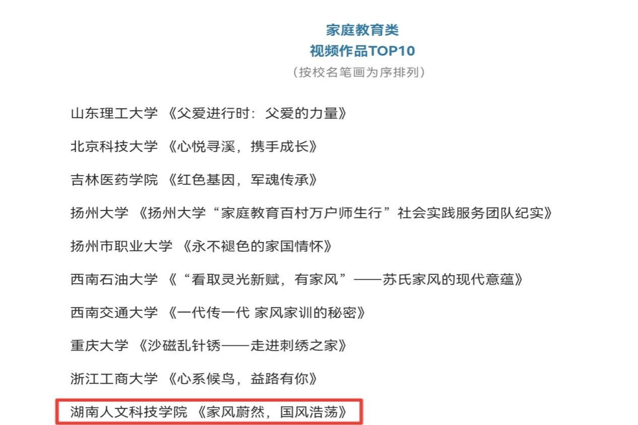 为引导当代大学生全面把握国情,通过具体的社会实践活动来感受中华优秀传统文化的核心价值,加深对中华优秀传统文化的认知,坚定历史自信和文化自信。中国青年报社联合中国传统文化促进会道德文化应用工作委员会开展2023年高校传统文化社会实践视频作品征集展示活动。经过线上说明会、网络展示等环节,由校团委书记刘佳总负责,曹瑜虹、李璐玢、彭禹铭三位老师精心指导“彩虹计划”志愿服务队制作的《家风蔚然,国风浩荡》视频脱颖而出,入选为2023年高校传统文化社会实践视频作品—家庭教育类视频作品TOP10。