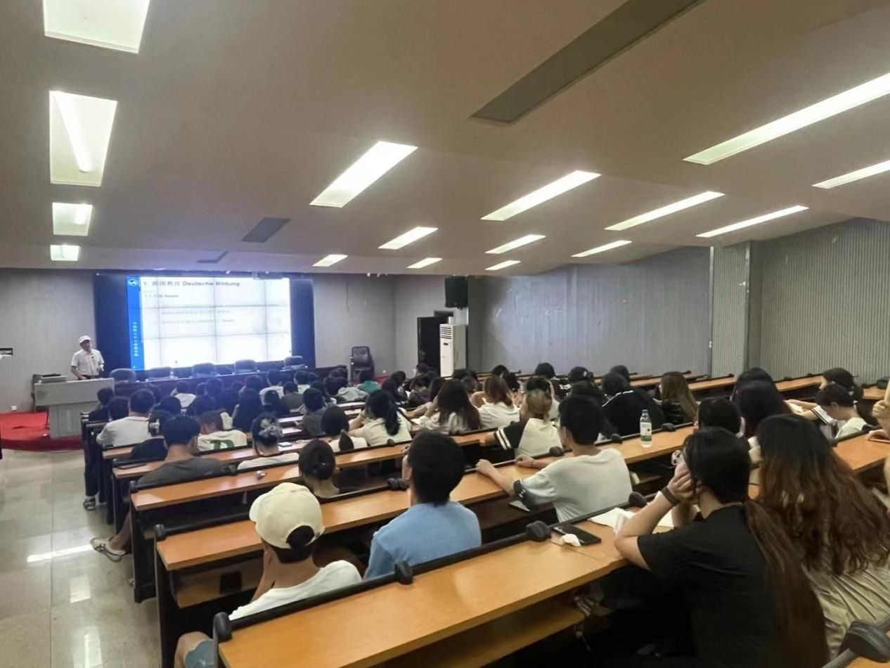 讲座期间,李爱辉介绍了中国和德国教育体系和文化的异同之处,他详细说明了德国大学的课程设置、教学方法和学生评价体系,分享如何在跨文化交流中求同存异。与会师生围绕讲座内容积极提问,现场气氛热烈。