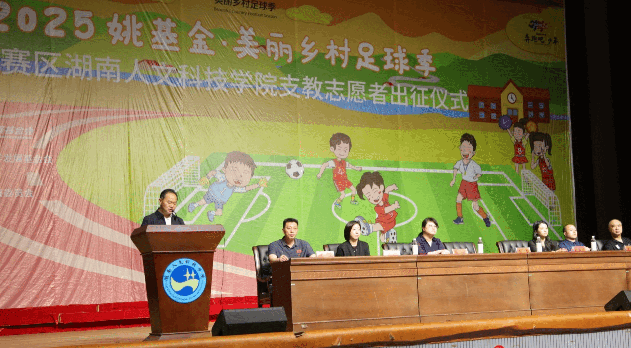 4月23日上午,姚基金“美丽乡村足球季”志愿者出征仪式在学校体育馆举行。湖南省希望工程办公室主任刘颖琦,校党委副书记朱强,湖南省青少年发展基金会希望事业部部长喻慕鸿等领导嘉宾与支教志愿者共聚一堂,共同见证这场以足球为媒、助力乡村教育振兴的青春行动。