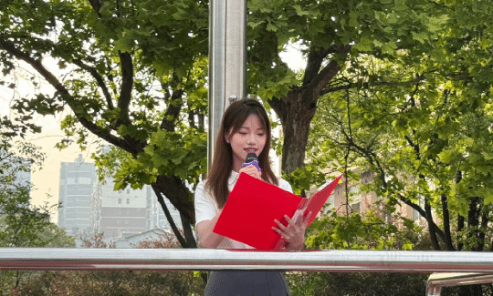 学生代表2024级网络工程专业的王璐在发言中说,新时代青年应传承五四先辈“爱国、进步、民主、科学”的精神内核,立足当下,学习专业知识,以严谨的态度迎接教学审核评估,用实际行动诠释责任与担当。她呼吁同学们从当下出发,以长远眼光规划成长,让青春在奋斗中闪光,引发全场共鸣。