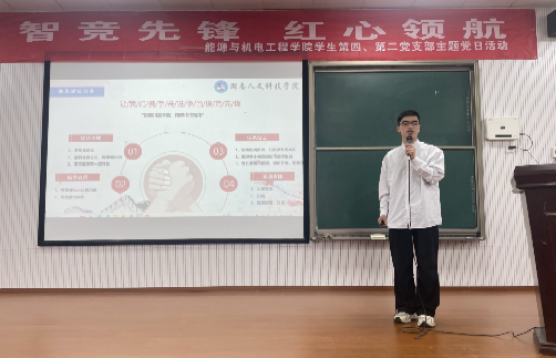 为优化“党建+”实践育人体系,深化研赛创协同育人成效,近日,beat365能源与机电工程学院学生第四、第二党支部以“智竞先锋,红心领航”为主题联合开展“一月一课一片一实践”主题党日活动。活动通过“党建+科创”双融双促模式搭建学科竞赛与创新创业经验分享平台,着力强化支部引领功能与党员示范效能,激发学生党员以红色信仰赋能技术创新,以工匠精神锤炼专业本领,共话新时代青年科技报国使命担当。