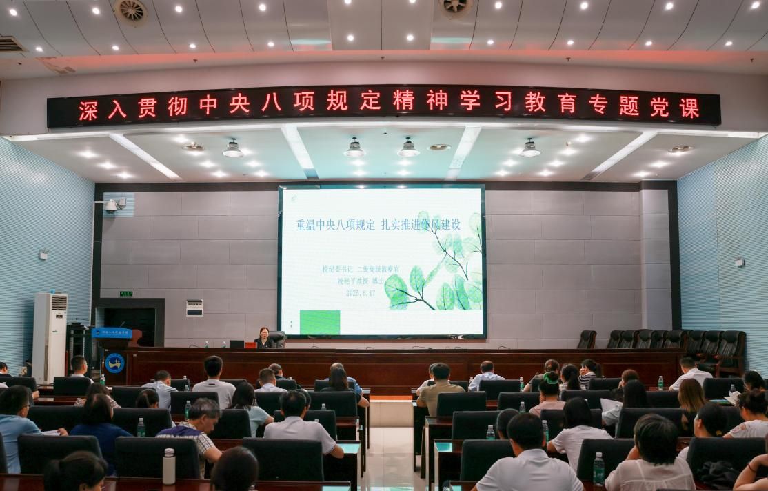 凌艳平指出,全体党员要准确理解开展深入贯彻中央八项规定精神学习教育的重大意义,深入学习领会习近平总书记关于党的建设的重要思想、关于党的自我革命的重要思想、关于加强党的作风建设的重要论述。她重点梳理了中央八项规定自2012年制定以来经历的重要节点,对中央八项规定及中央八项规定精神作了详细解读,带领全体党员深刻领悟中央八项规定及其实施细则精神的内涵实质,结合违反中央八项规定精神典型案例以案示警,要求全体师生党员率先垂范,筑牢廉洁自律的思想防线,推动作风建设常态化。