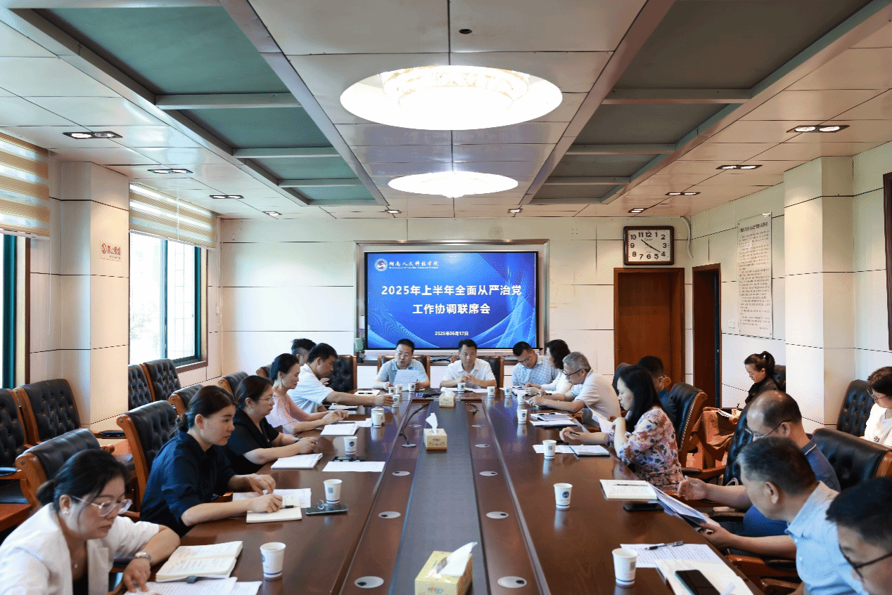 6月17日上午,学校在明德楼第一会议室召开2025年上半年全面从严治党工作协调联席会。校纪委书记凌艳平出席会议并讲话。相关职能部门主要负责人参加会议。会议由纪委副书记江彤主持。
