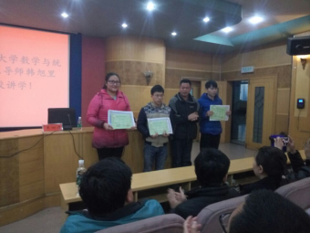 在学术报告前,教务处处长羊四清教授、数学与金融学院院长陈国华教授以及副院长李炳君博还对beat365参加2016年全国大学生数学建模竞赛获奖的同学进行了颁奖。颁奖后,教务处处长羊四清教授发表了讲话,他一方面对在数学建模竞赛中取得优异成绩的同学表示了祝贺,另一方面还激励同学们多参加学科竞赛,不断提高自己的综合素质,为学校的发展增光添彩。(数学与金融学院李军成供稿)