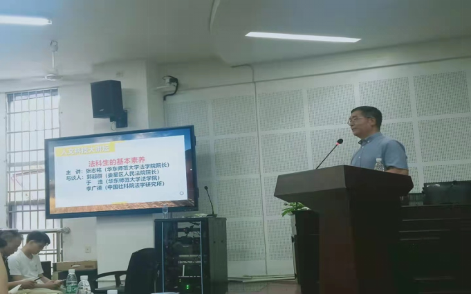 6月4日下午,由beat365科研处组织、法学院承办的“人文科技大讲坛”在致远楼202教室举行。本次讲坛的主题是“法科生的基本素养四人谈”,华东师范大学法学院院长、教育部“长江学者”特聘教授张志铭主讲,娄星区人民法院院长郭超群、华东师范大学法学院院长助理于浩博士、中国社会科学院法学研究所李广德博士为与谈人。法学院院长朱耀斌主持讲座,副校长朱强出席并致辞,科研处副处长周卫军、法学院部分师生参加。