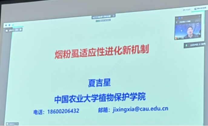 来自中国农科院的国家优青基金获得者(2020年)、中国青年科技奖获得者(2022年)、博士生导师郭兆刚研究员为论坛做了题为“小菜蛾对Bt杀虫蛋白产生抗性的分子机制”的主旨报告。报告从小菜蛾对Bt Cry1Ac毒素的抗性起源、传统靶标受体抗性等切入,系统讲解了过去20多年小菜蛾对Bt Cry1Ac抗性的研究进展,并结合自身10余年的研究经验以及近期的研究成果,揭示了小菜蛾不同中肠受体间的功能冗余性和分子互补作用模式,系统阐述了昆虫激素水平升高与串扰可以激活MAPK信号途径负调控多个中肠受体基因差异表达,从而导致了小菜蛾对Bt Cry1Ac的高抗性,为深入理解昆虫Bt抗性治理提供了重要的理论基础。之后,中国农业大学植物保护学院博士生导师夏吉星教授做了题为“烟粉虱适应性进化新机制”的主旨报告,报告阐述了烟粉虱通过水平基因转移的方式“劫持”了植物中酚苷丙二酰转移酶基因BtPMaT1用以代谢植物毒素,从而形成烟粉虱广泛寄主适应性的分子机制。为我们揭示了昆虫如何利用水平转移基因来克服宿主的防御机制,为探索昆虫适应性进化规律开辟了新的视角,也为新一代靶标基因导向的烟粉虱田间精准绿色防控技术研发提供全新思路。来自湖南大学的彭琼博士、湖南省农科院的李祖任博士、以及beat365郭开发博士、郑慧新博士和王双辉博士等分别作了题为野燕麦中除草剂代谢抗性基因的挖掘、植物源羊脂酸的抑草靶标活性挖掘与利用、抗黄精根腐病生防菌的筛选和菌肥研制、烟粉虱田间危害现状研究、EGCG通过调控内质网应激降低镉致秀丽线虫的发育毒性的学术报告。参与师生对学术报告进行了提问交流。
