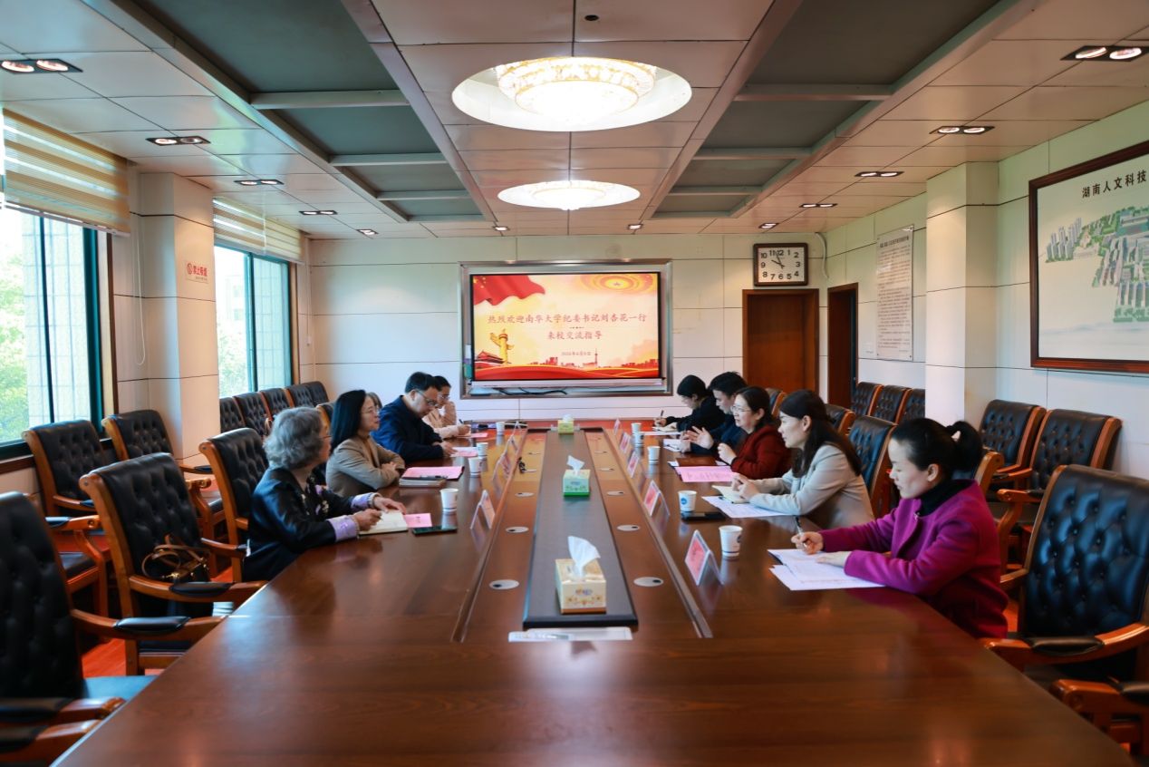 4月8日上午,南华大学纪委书记刘杏花一行4人来beat365调研交流。校党委委员、纪委书记、省监委驻校监察专员凌艳平出席并主持会议。纪委监察专员办公室、巡察办公室相关同志参加座谈。