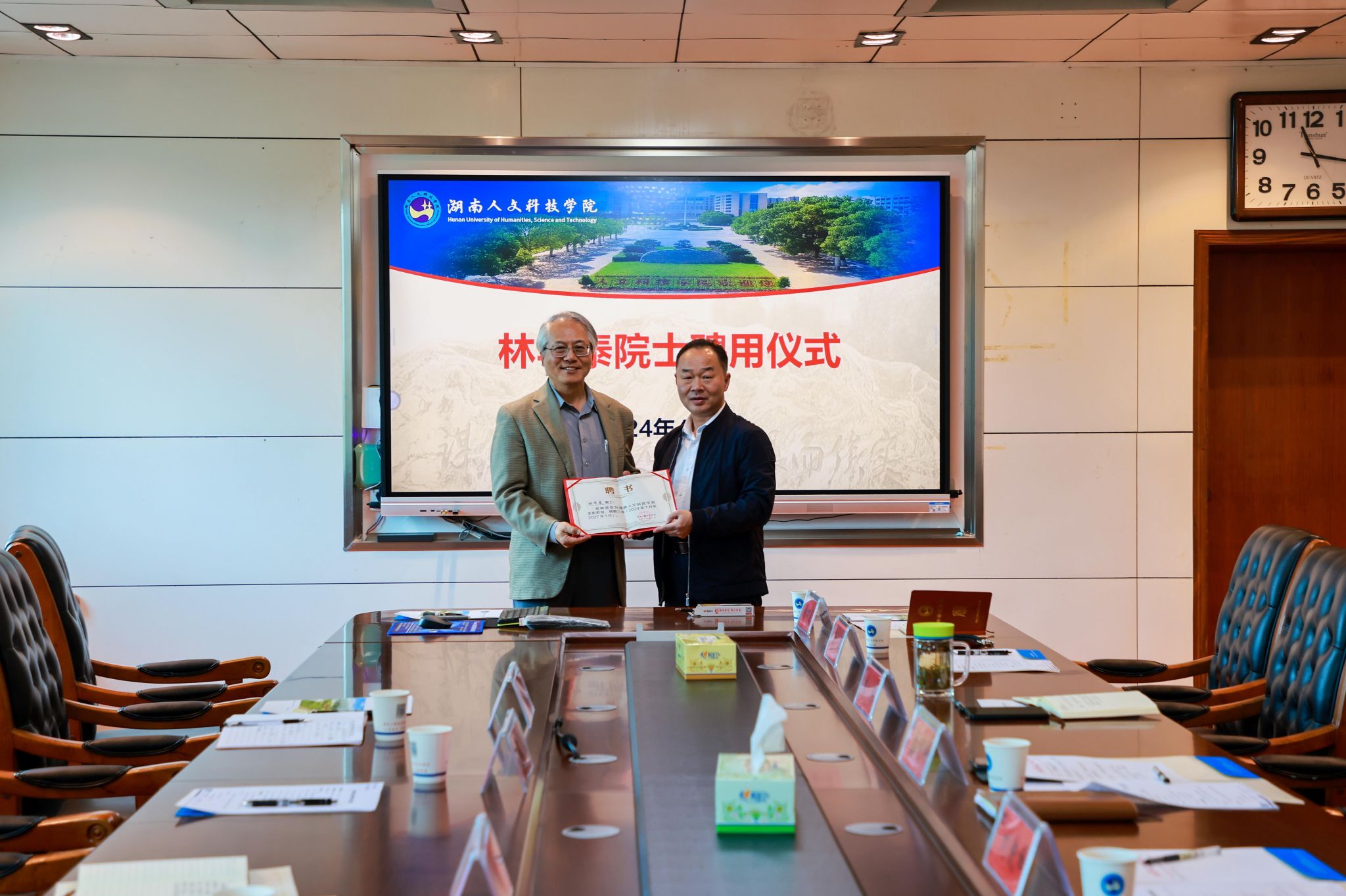 4月9日上午,林华泰院士聘任仪式在明德楼404会议室举行。校长盛明科,副校长刘铁峰,党委副书记朱强出席,人事处、国际交流处、材料与环境工程学院等单位负责人参加。仪式由刘铁峰主持。
