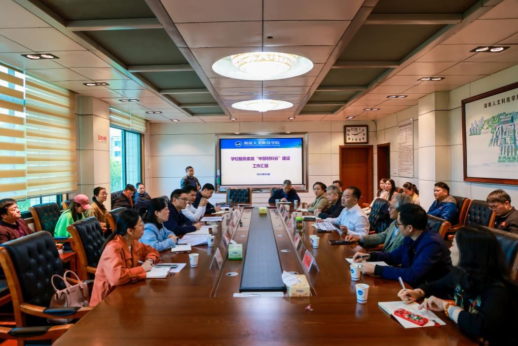 朱强从学校近年科技成果转化整体情况、学校服务材料谷建设情况、今后知识产权服务材料谷建设重点等方面汇报了学校知识产权服务娄底“材料谷”工作情况。