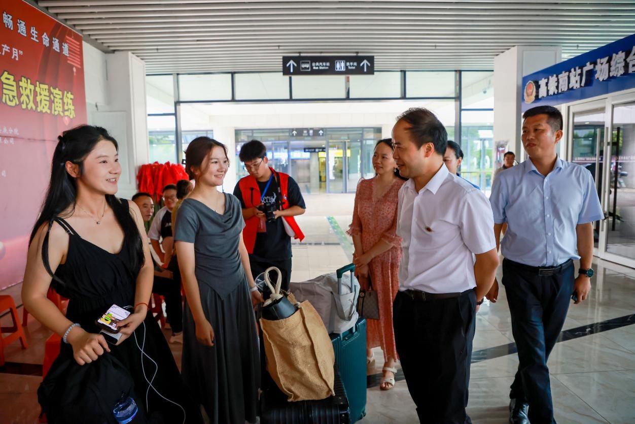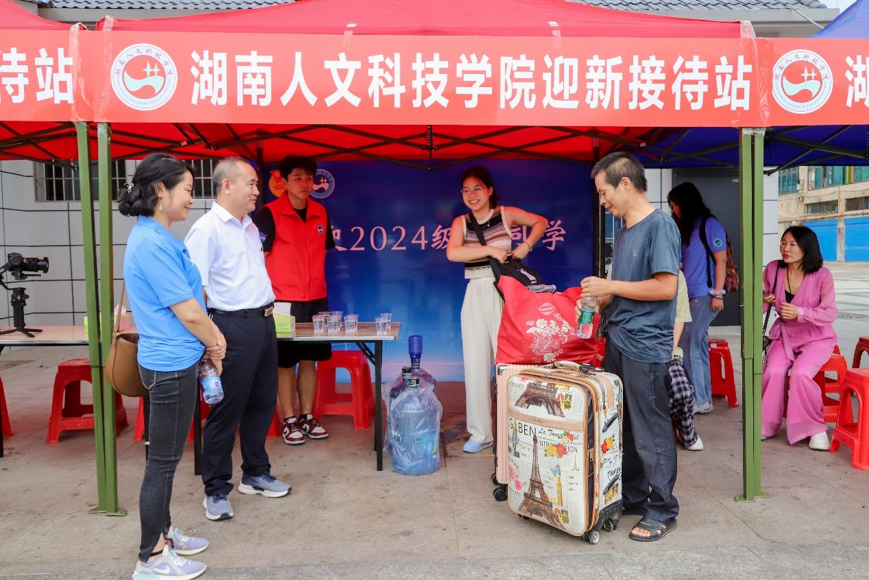 刘铁峰来到娄底市火车站迎新点仔细询问接待站的情况,他强调要及时进行人员和车辆的临时调配,协助新生及家长快速、便捷前往学校。他亲切询问了新生及家长旅途情况,并叮嘱老师和学生志愿者做好服务工作,让每一位新生及家长都能感到学校温暖如家。