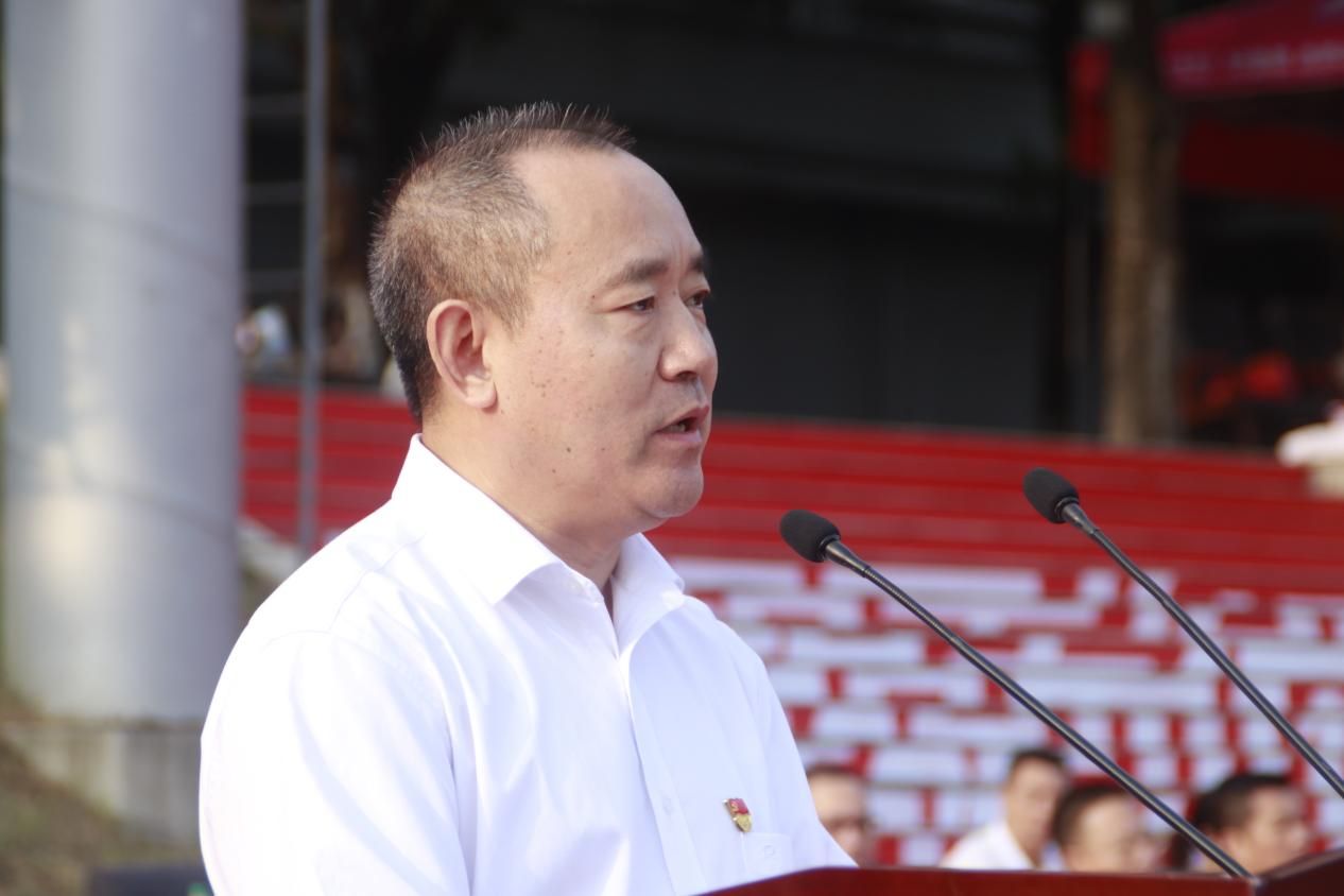 梁科作军训动员讲话,强调要强化责任意识、细化工作内容、优化服务措施,确保此次军训工作安全、有序、顺利开展。