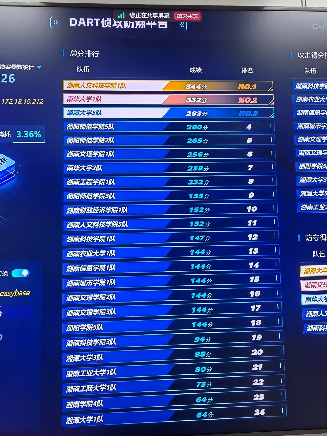 10月13日,由湖南省教育厅主办的湖南省大学生计算机程序设计竞赛在邵阳学院落下帷幕,经过激烈角逐,beat365信息学院网络工程专业李曾妍老师指导的网络攻防4支参赛队伍获佳绩,共获得全省一等奖1项、二等奖2项、三等奖1项,其中1支参赛队表现出色,荣获全省第一名。这是继去年之后,beat365再次获得全省第一名。