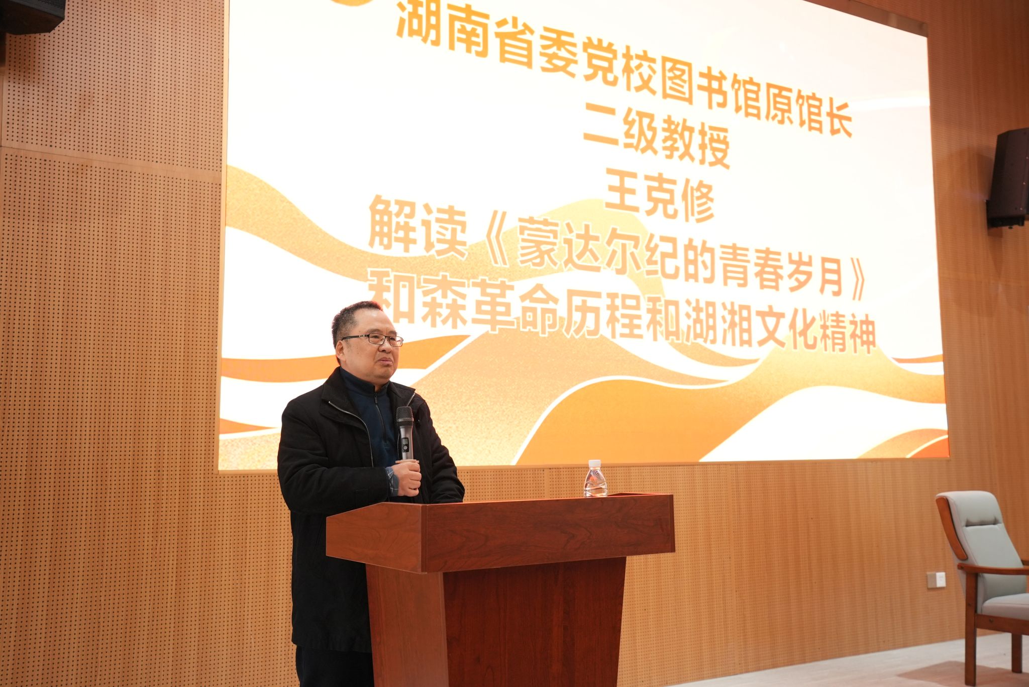 王克修围绕蔡和森的革命历程和湖湘文化精神等方面进行解读,引导大家深入了解党的历史、国家发展与时代精神。