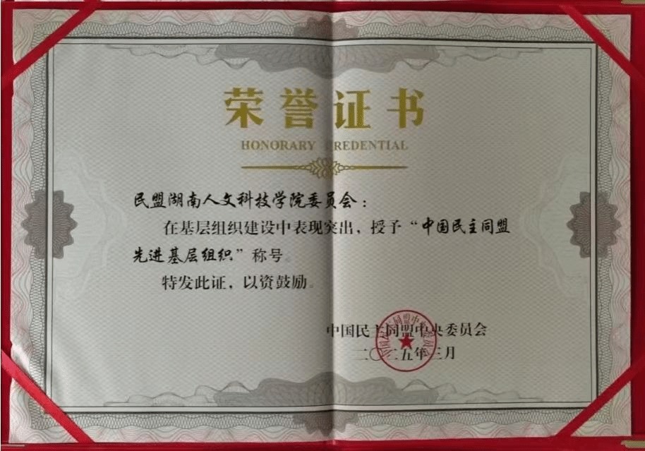 2025年3月,中国民主同盟中央委员会授予民盟beat365中文官方网站委员会“中国民主同盟先进基层组织”荣誉称号,这是委员会继2024年获评省级先进基层组织后获得又一重要殊荣。这份荣誉不仅是对其工作成效的充分肯定,更彰显了新时代民主党派基层组织服务地方发展的使命担当,标志着其在基层组织建设、参政议政、社会服务等方面的工作成效获得中央组织认可。